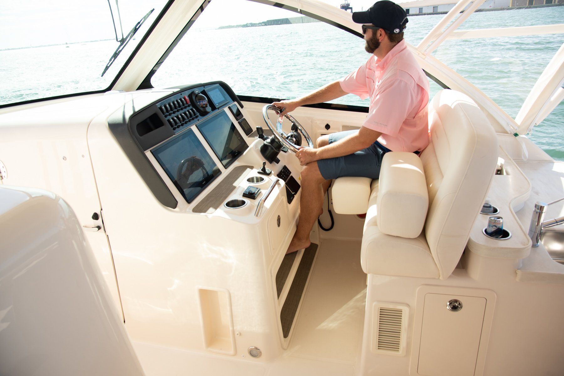 Freedom 375 Con mucho espacio para una multitud y opciones de asientos lujosos, incluidos asientos de proa envolventes con dos mesas, no encontrará un bote más cómodo y mejor equipado que el Freedom 375. Este bote de pesca de 37 pies, el mejor de doble consola, incorpora un termostato controlado digitalmente en la caja de pesca de popa, 30 gal. vivero y estabilizadores opcionales. Las características estándar que se suman a la comodidad durante todo el día incluyen el techo rígido con gabinete AV² ® , aire acondicionado en el timón y en la consola interior, y techo corredizo electrónico y SureShade ® , cada uno de los cuales brinda mayor comodidad en los días cálidos. Con el galardonado casco SeaV² ® de Grady y un Seakeeper ® 5 opcional , el 375 puede pasar sin problemas de una actividad acuática a otra.